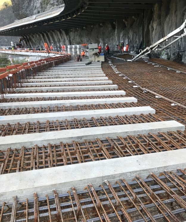 2013Pose d’une « casquette » en béton de 100 m de long au-dessus de la Route Blanche