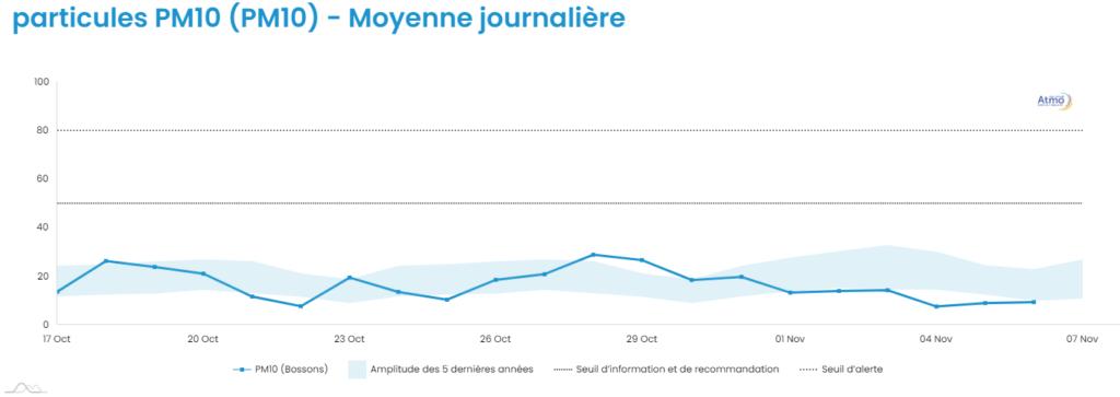Moyenne des PM10 Bossons : 17µg/m3 (habituellement entre 15 et 25)