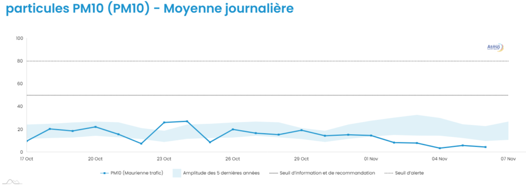 Moyenne des PM10 Maurienne trafic : 14µg/m3 (habituellement entre 15 et 25)