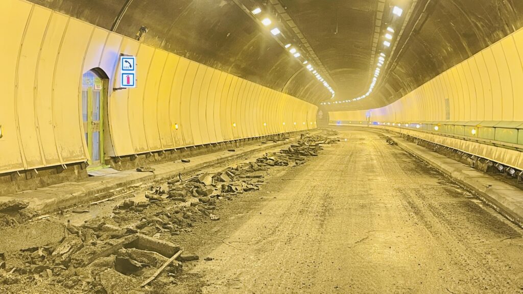Après 20 années de trafic depuis la réouverture de l’ouvrage en mars 2002, les chaussées du tunnel doivent être rénovées sur toute sa longueur..
