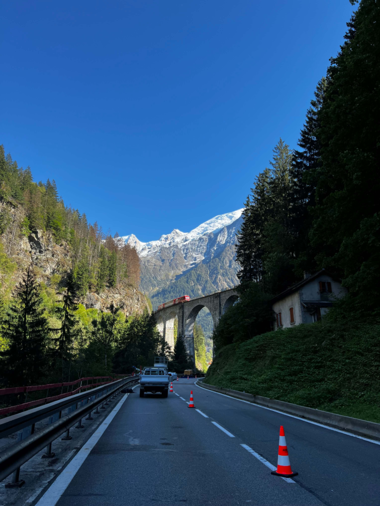 Travaux sur la RN205, sur la rampe d’accès au Tunnel du Mont Blanc : rénovation d’un pont situé à 700 mètres de l’entrée du Tunnel