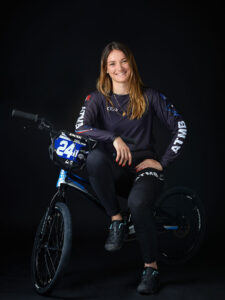 23 ans, pilote national en BMX Race, 3ème au championnat du monde en 2014, elle a repris la compétition en 2021. Cette année, elle a déjà réalisé 2 podiums sur des manches de la coupe de France.