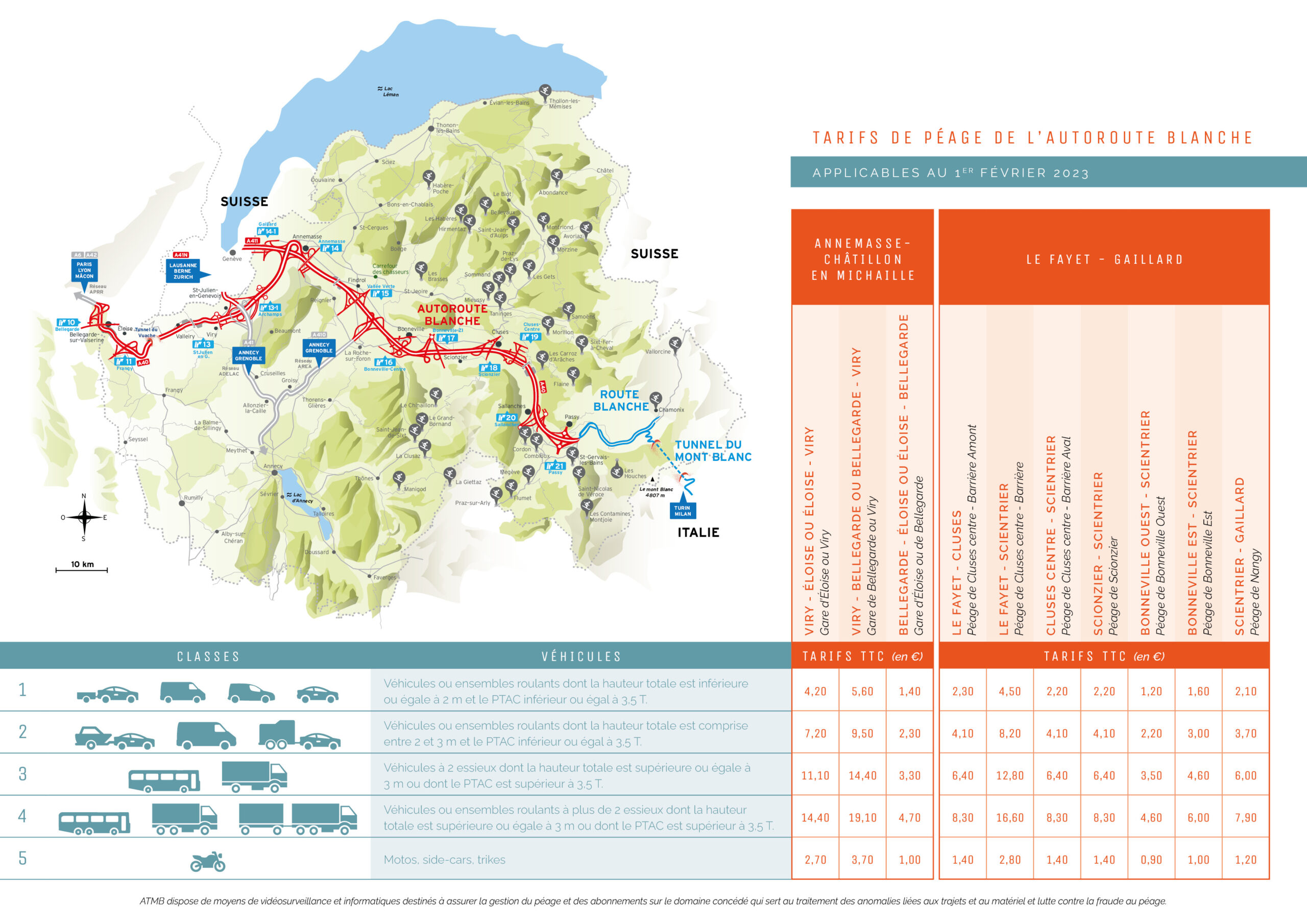 Les tarifs de péage de l'Autoroute Blanche (A40) pour les véhicules légers